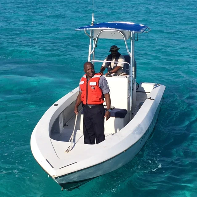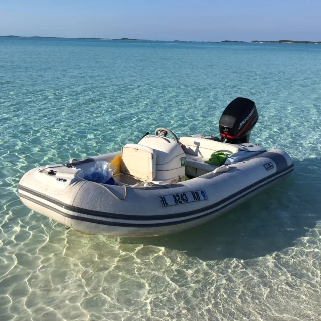 This is our dingy in the pristine waters of the Bahamas.