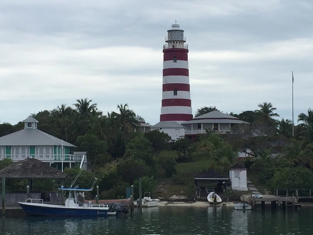 As we pulled into Hopetown we saw the harbour jammed with boats. Dale had called ahead on the radio and the Dockmaster advised he saw no open mooring balls. The Dockmaster advised if there was a mooring with a white pennant on it that the owner was away but would be returning. We saw two mooring balls with pennants and another one with someone in a dingy attaching a white pennant. It appears his boat was anchored outside the harbour and he came in by dingy to claim the only open mooring ball. Brilliant! We resigned ourselves to heading to nearby Marsh Harbour. As we exited the harbour I noticed the Lighthouse Marina had several open slips. I suggested Dale give them a call on the VHF channel 16. Turns out they just had two cancellations. We were in at $1.00 per foot. It is just a short walk to the Elbow Cay lighthouse in Hope Town. As pleasant as it is to be swinging on a mooring ball it also nice to be plugged in again.