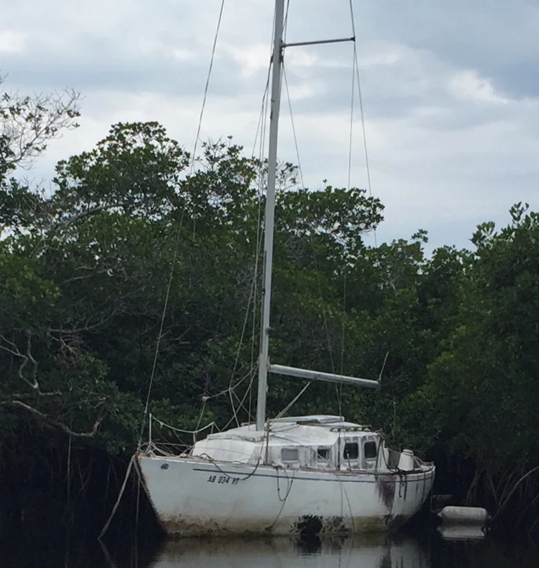 Bonus photo – a good deal on a gently used boat in the mangrove swamps in Hope Town.