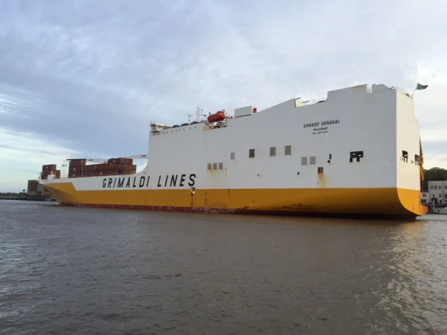 This is a commercial harbor with several car carriers transiting back and forth past us.