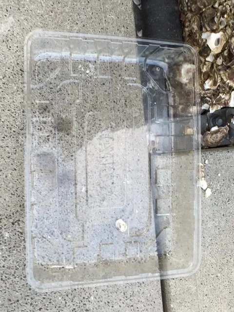 At 3:00 am I heard a scraping sound on the hull. It sounded like fiberglass scraping something hard. That is disturbing because we have six fenders out and there is no wind. I got up, got dressed and went out on the dock. I looked around and saw the boat was several inches from the dock. Then I heard the scraping again. There was a large plastic lid between the boat and the dock. It had floated in and was rubbing against our boat.
