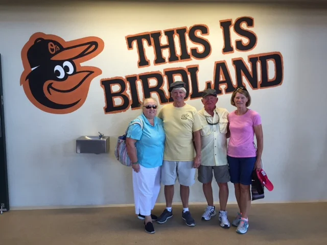 The four amigos. Still friends after living in close quarters for 271 days. Birdland is another name for the Baltimore Orioles baseball stadium. Today was retro men’s hat day in honor of Father’s Day.