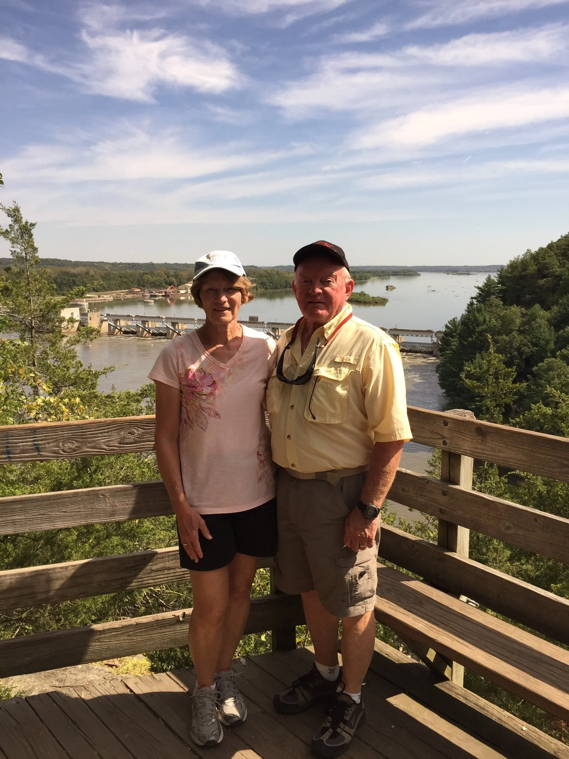 We spent the day sightseeing at Starved Rock State Park. The Heritage Harbor Marina has a free loaner car. Just fill it up with gas before bringing it back. The area within Starved Rock State Park has been home to humans as early as 8,000 BC. In 1673 French explorers Louis Jolliet and Father Jacques Marquette passed through here. Starved Rock State Park derives it name from a legend of injustice and retribution. Pontiac, chief of the Ottawa tribe, was slain by the Illiniwek. During one of the battles to avenge his death, the Illiniwek sought refuge on the top of a 125′ sandstone bluff. The Ottawa and Potawatomi surrounded the bluff and held their ground until the Illiniwek died of starvation After a day of touring, we returned to the marina and enjoyed a swim in the pool and had dinner at the Red Dog Grille.