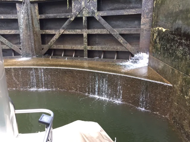We were the last boat into the lock. We had to make sure we were not on top of the sill as the water dropped. That would not be good to be hung up on the sill.