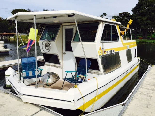 Bonus photo: This is an 18′ X 8′ mini houseboat. It would be an economical boat on which to do the Loop.