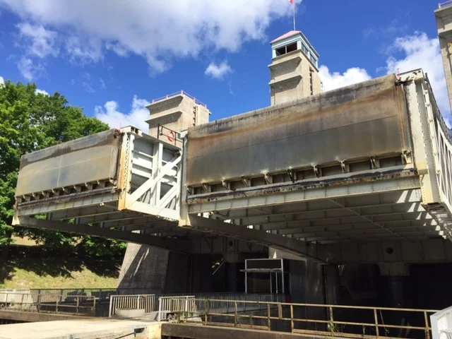 On Sunday we will transit the famous Peterborough lift lock. That is the highest hydraulic lock in the world at 64′ for the lift. I walked over to watch it in operation today. It is an amazing feat of engineering.